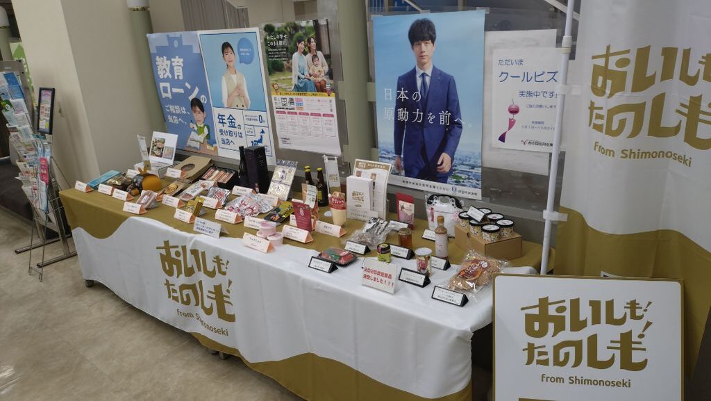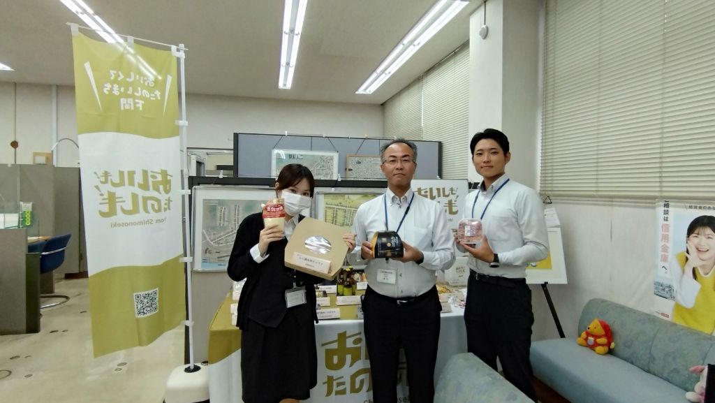 7月14日(月)から、西中国信用金庫様のご協力で、各支店のロビーで「おいしも!たのしも!」 認定商品のサンプル展示が始まります。