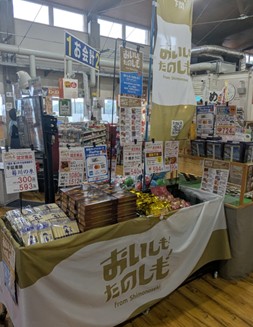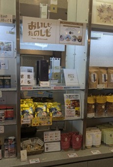 (店内のいろいろなところに「おいしも!たのしも!」認定産品が並んでます!)