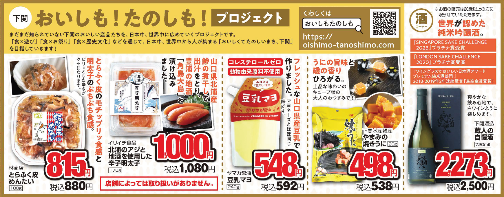 この度、アルクの4つの店舗で、下関の魅力がぎゅっと詰まった「おいしも!たのしも!」認定商品を販売することになりました!